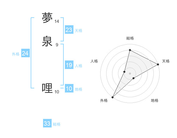 夢泉 哩さんの天格は23画の5点!