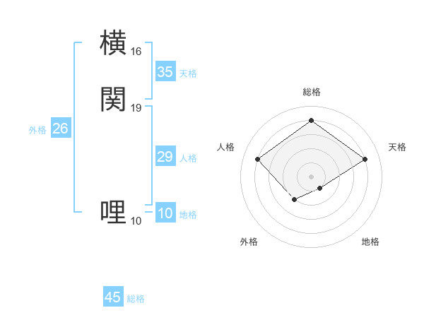 横関 哩さんの総格は45画の4点!