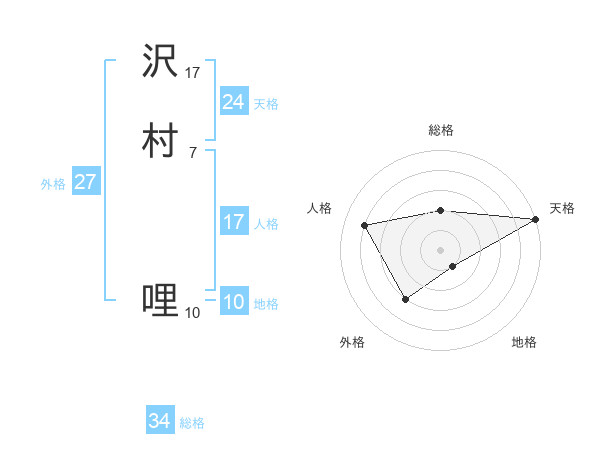 沢村 哩さんの天格は24画の5点!