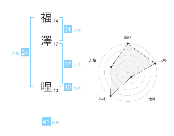福澤 哩さんの天格は31画の5点!