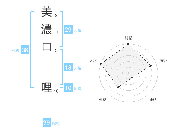 美濃口 哩さんを姓名の画数から五運を鑑定