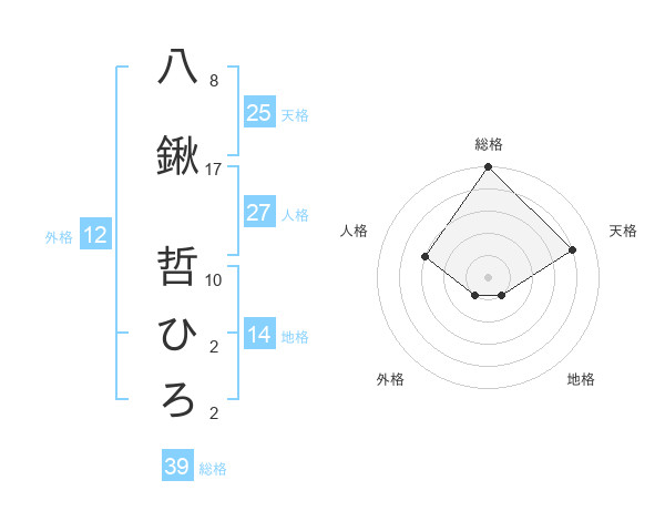 八鍬 哲ひろさんの総格は39画の5点!