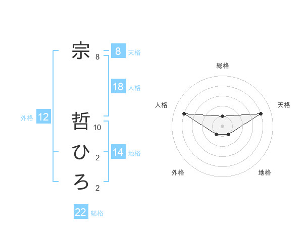 宗 哲ひろさんの天格は8画の4点!