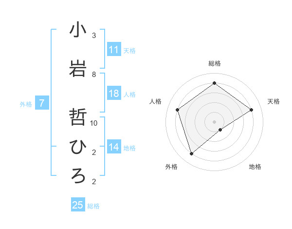 小岩 哲ひろさんの総格は25画の4点!