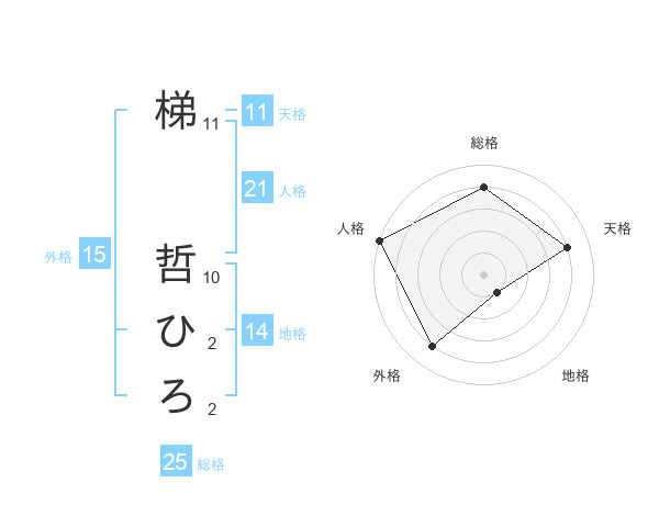 梯 哲ひろさんを姓名の画数から五運を鑑定