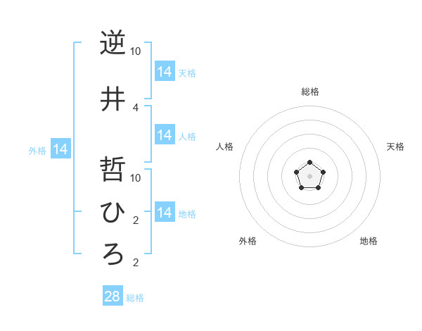 逆井 哲ひろさんの天格は14画の1点!