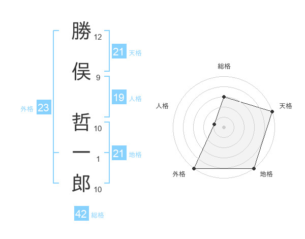 勝俣 哲一郎さんの天格は21画の5点!