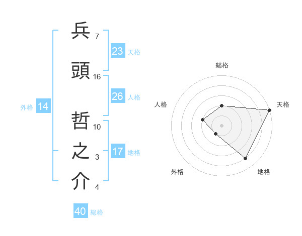 兵頭 哲之介さんの天格は23画の5点!