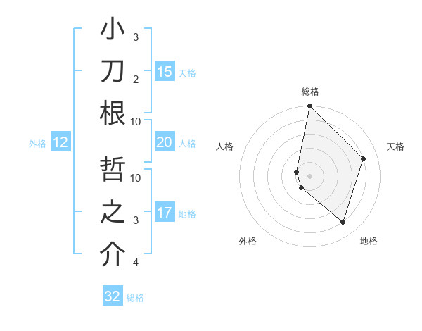 小刀根 哲之介さんを姓名の画数から五運を鑑定