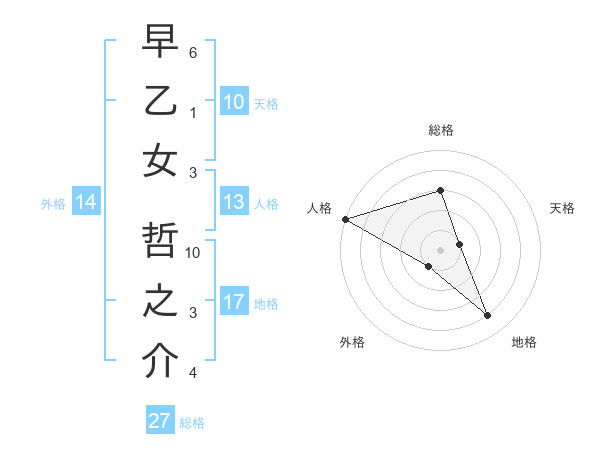 早乙女 哲之介さんを姓名の画数から五運を鑑定