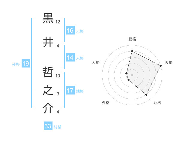 黒井 哲之介さんの天格は16画の5点!