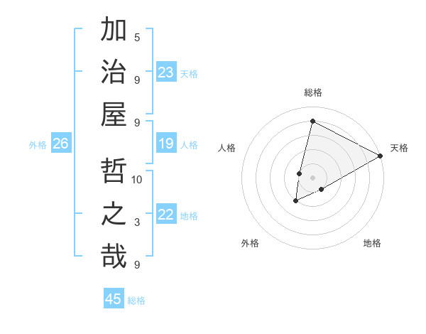 加治屋 哲之哉さんを姓名の画数から五運を鑑定