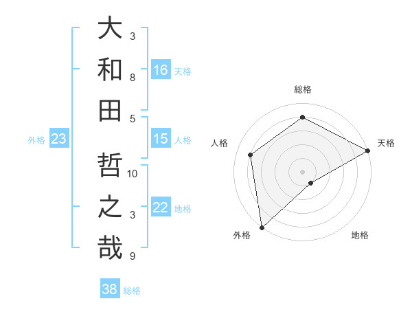 大和田 哲之哉さんを姓名の画数から五運を鑑定