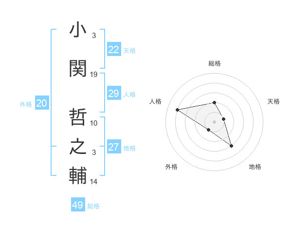小関 哲之輔さんを姓名の画数から五運を鑑定