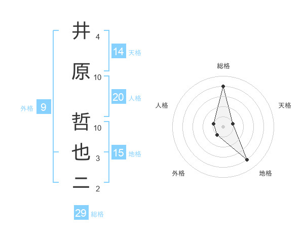 井原 哲也ニさんを姓名の画数から五運を鑑定