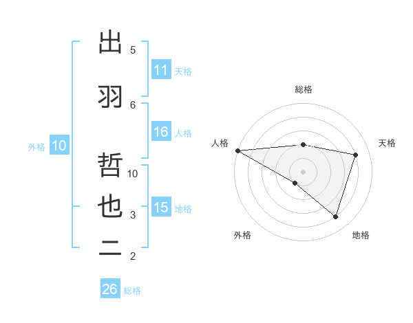出羽 哲也ニさんの総格は26画の2点!