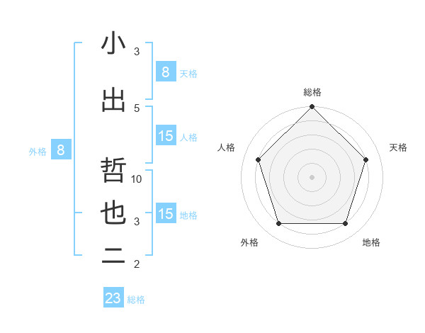 小出 哲也ニさんの総格は23画の5点!