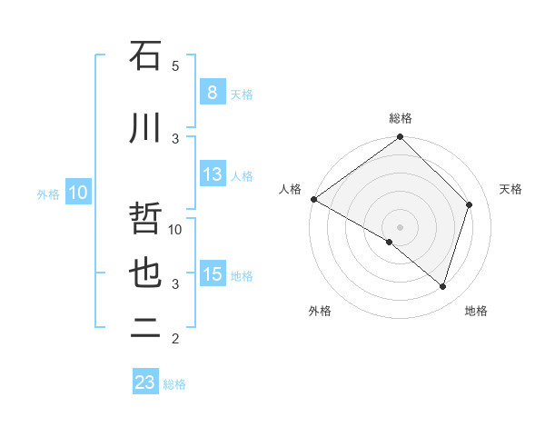 石川 哲也ニさんを姓名の画数から五運を鑑定