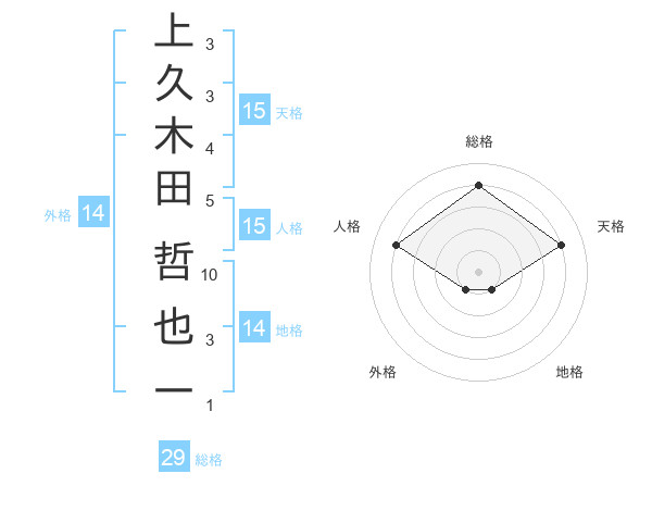 上久木田 哲也一さんの総格は29画の4点!
