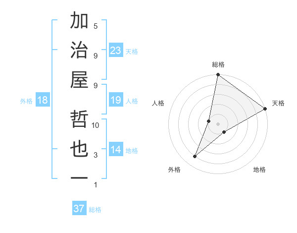 加治屋 哲也一さんを姓名の画数から五運を鑑定