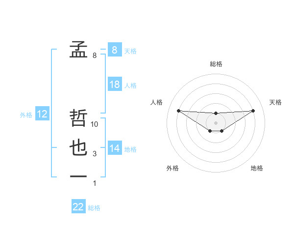 孟 哲也一さんを姓名の画数から五運を鑑定