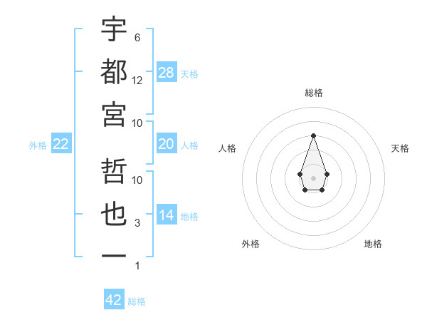 宇都宮 哲也一さんを姓名の画数から五運を鑑定