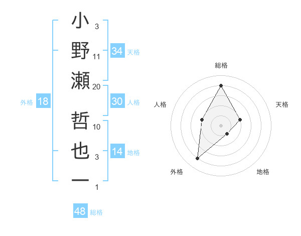 小野瀬 哲也一さんを姓名の画数から五運を鑑定