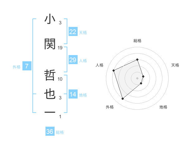 小関 哲也一さんを姓名の画数から五運を鑑定