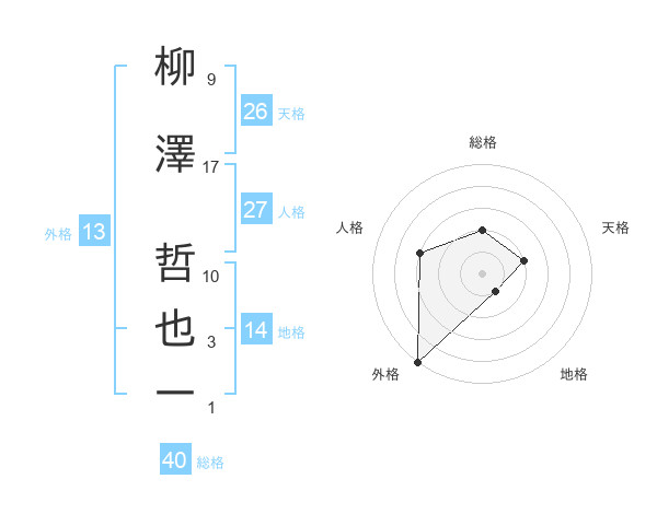 柳澤 哲也一さんを姓名の画数から五運を鑑定