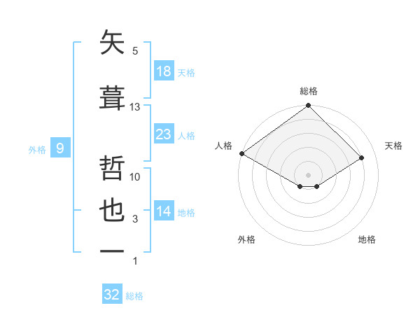 矢葺 哲也一さんを姓名の画数から五運を鑑定