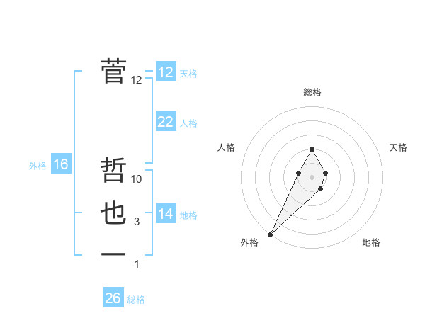 菅 哲也一さんを姓名の画数から五運を鑑定
