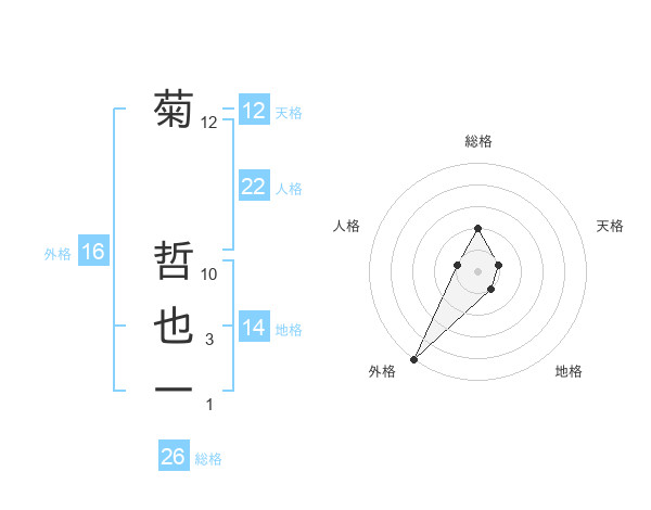 菊 哲也一さんの総格は26画の2点!