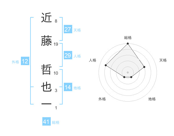 近藤 哲也一さんの総格は41画の5点