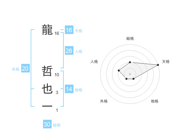 龍 哲也一さんの天格は16画の5点!
