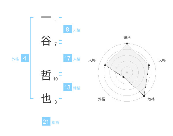一谷 哲也さんを姓名の画数から五運を鑑定