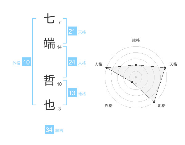 七端 哲也さんの総格は34画の2点!