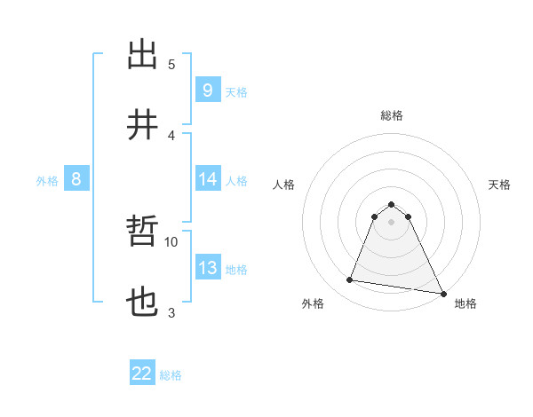 出井 哲也さんの総格は22画の1点!