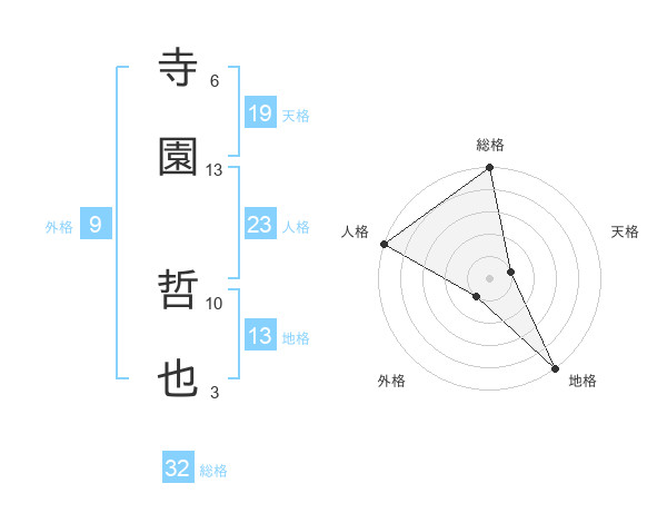 寺園 哲也さんの総格は32画の5点!