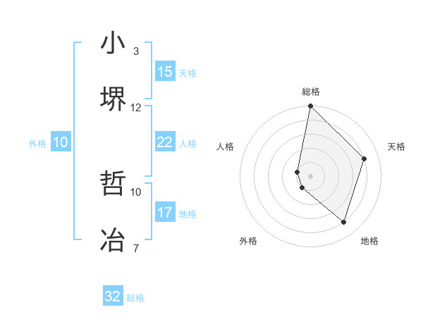 小堺 哲冶さんの総格は32画の5点!