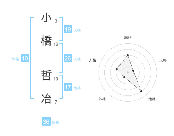 小橋 哲冶さんの総格は36画の3点!
