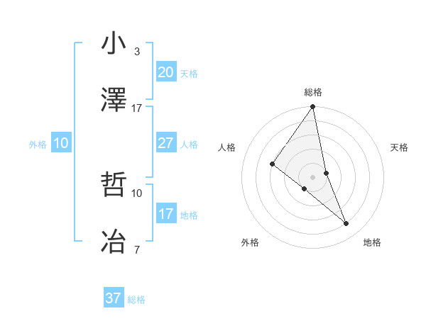 小澤 哲冶さんを姓名の画数から五運を鑑定