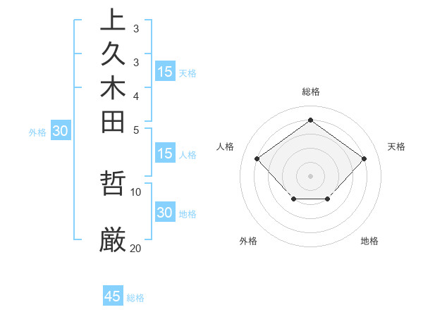 上久木田 哲厳さんを姓名の画数から五運を鑑定