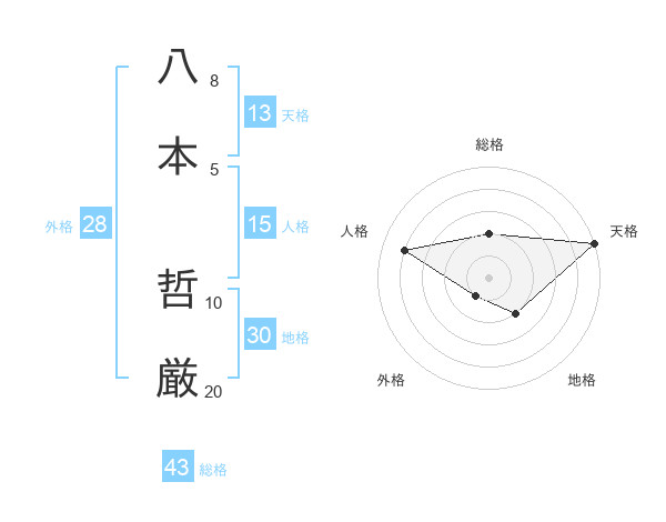 八本 哲厳さんを姓名の画数から五運を鑑定