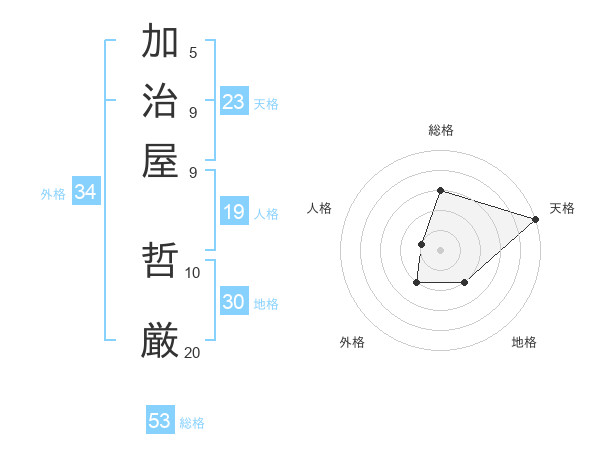 加治屋 哲厳さんを姓名の画数から五運を鑑定