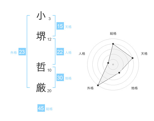 小堺 哲厳さんの外格は23画の5点!