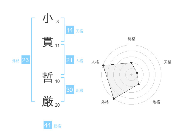 小貫 哲厳さんの総格は44画の2点!