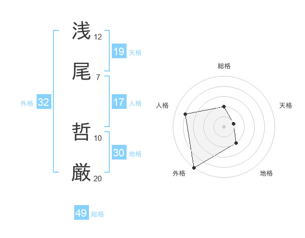 浅尾 哲厳さんの外格は32画の5点!