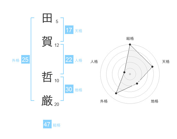 田賀 哲厳さんの総格は47画の5点!