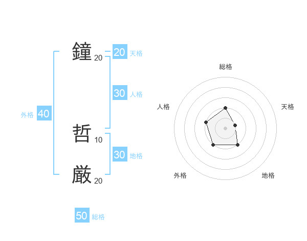 鐘 哲厳さんの総格は50画の2点!