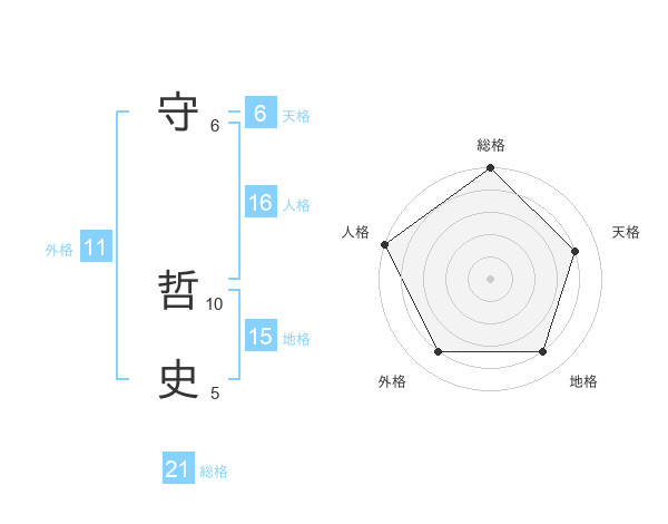 守 哲史さんの総格は21画の5点!